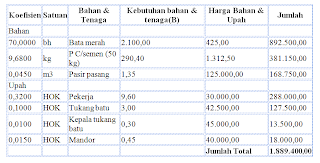 Demikian contoh perhitungan pasangan 1/2 bata dengan campuran adukan 1 pc:5ps